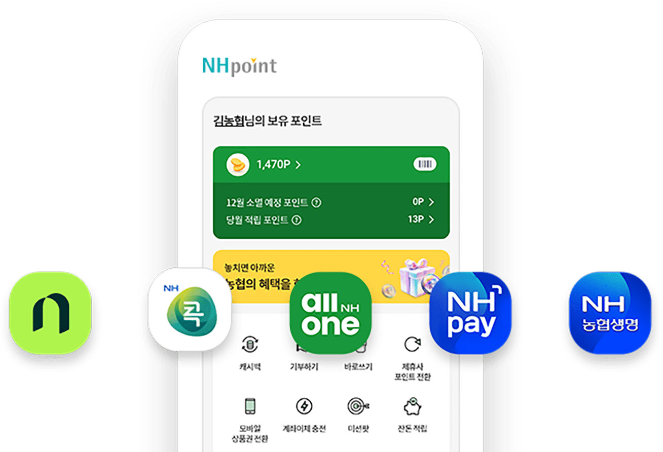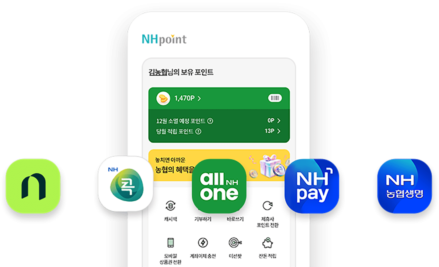 대한민국 금융과 유통 분야를 선도하는 농협 제휴사 및 다양한 NH포인트 외부 가맹점의